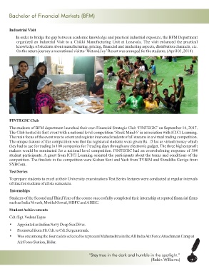 Students of the Second and Third Year of the course successfully completed their internship at reputed financial firms