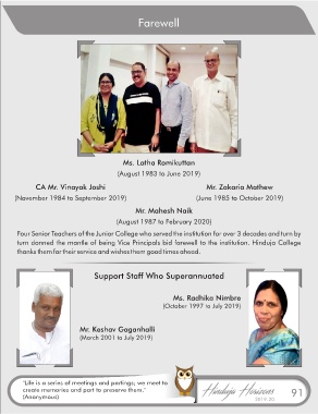 turn donned the mantle of being Vice Principals bid farewell to the institution. Hinduja College