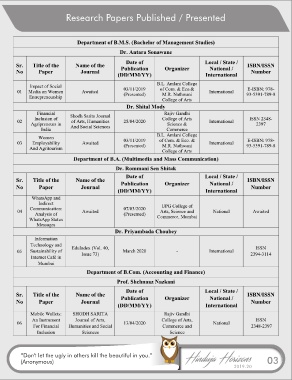 Research Papers Published / Presented “Don't let the ugly in others kill the beautiful in you.” (Anonymous) 03 2019-20