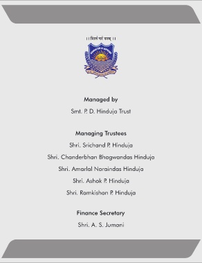 Managed by Smt. P. D. Hinduja Trust Managing Trustees Shri. Srichand P. Hinduja Shri. Chanderbhan Bhagwandas Hinduja Shri. Amarlal Naraindas Hinduja Shri. Ashok P. Hinduja Shri. Ramkishan P. Hinduja Finance Secretary Shri. A. S. Jumani