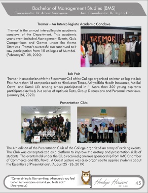 of Commerce and IBS, Powai. A Guest Lecture was also organised to apprise students about