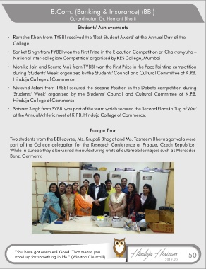 · Ramsha Khan from TYBBI received the 'Best Student Award' at the Annual Day of the