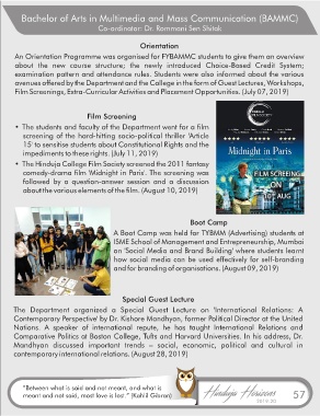 An Orientation Programme was organised for FYBAMMC students to give them an overview