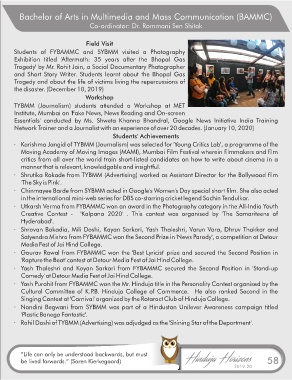 · Karishma Jangid of TYBMM (Journalism) was selected for 'Young Critics Lab', a programme of the