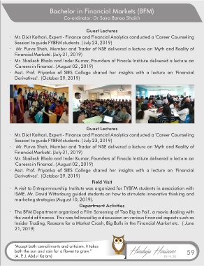 · Asst. Prof. Priyanka of SIES College shared her insights with a lecture on 'Financial