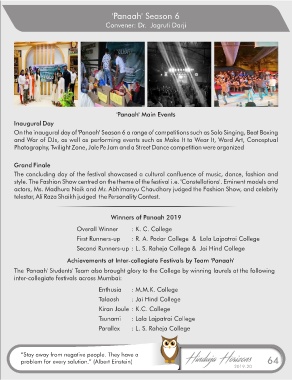 The 'Panaah' Students' Team also brought glory to the College by winning laurels at the following