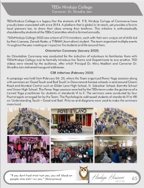 TEDxHinduja College 2020 saw a team of 210 members, each with their own unique set of skills led