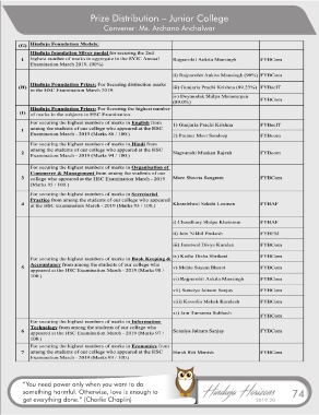 Prize Distribution – Junior College Convener: Ms. Archana Anchalwar “You need power only when you want to do something harmful. Otherwise, love is enough to 74 get everything done.” (Charlie Chaplin) 2019-20