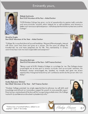 “Hinduja College provided me ample opportunities to enhance my soft skills and