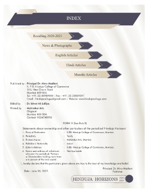 5. Editor's Address : K.P.B. Hinduja College of Commerce, Mumbai.