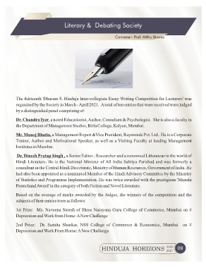 The thirteenth 'Dharam S. Hinduja Inter-collegiate Essay Writing Competition for Lecturers' was