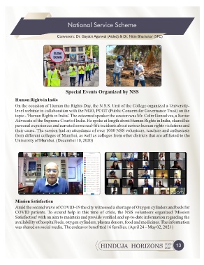 COVID patients. To extend help in this time of crisis, the NSS volunteers organized 'Mission