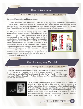 The Alumni Association along with the NSS Unit of the College organized a webinar on 'Consumerism and