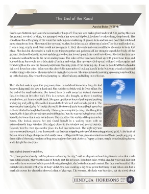 a bun and walked towards the never-ending road. The sides of the road were lined up with ginormous trees and