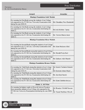 Prize Distribution Convener: . Dr. CA Chandrashekhar Deore 2021 - 2022 22 HINDUJA HORIZONS