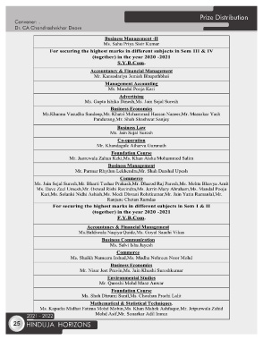 Prize Distribution Convener: . Dr. CA Chandrashekhar Deore 2021 - 2022 25 HINDUJA HORIZONS