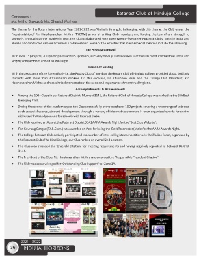 ● Among the 100+ Clubs in our Rotaract District, Mumbai 3141, the Rotaract Club of Hinduja College was ranked as the 6th Best