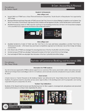 ● Shubhda Ramkrishna Tandel of TYBAF won the First Prize in the Quiz and Dance compe ons and the Third Prize in