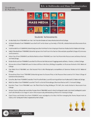 ● Nidhi Dandekar from FYBAMMC won the Third Prize for Ad Filmmaking at Illuminavi fes val at R.D. Na onal College.
