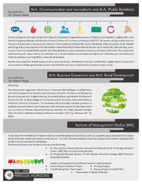 A two-day Online Workshop for Master of Library and Informa on Science (M.Lib. and I.Sc.) students was conducted at the College
