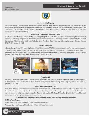 The Society conducted a virtual event tled 'Finposium', which dealt with Financial Planning. The event, which included two major