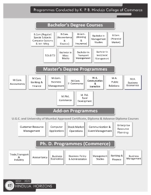 Programmes Conducted by K. P. B. Hinduja College of Commerce Bachelor in Investment Management M. A. Communica on & Journalism M. Phil. Rural Development Enterprise Resource Planning Ph. D. Programmes (Commerce) 2021 - 2022 87 HINDUJA HORIZONS
