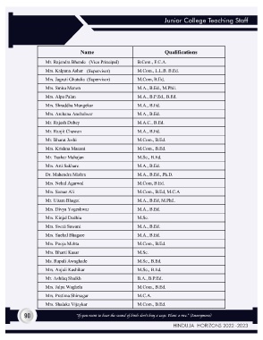 Junior College Teaching Staff 90 “If you want to hear the sound of birds don't buy a cage. Plant a tree." (Anonymous) HINDUJA HORIZONS 2022 -2023