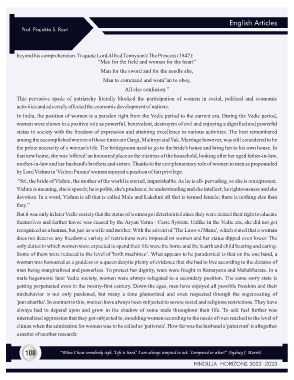 male hegemonic later Vedic society, women were always relegated to a secondary position. The same sorry state is