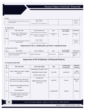Research Papers Published / Presented 07 “Success is not the key to happiness. Happiness is the key to success." (Albert Schweitzer) HINDUJA HORIZONS 2022 -2023