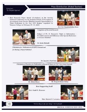 Felicitation of Teachers for Publication of Research Papers in UGC Care Listed Journals