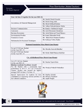 Prize Distribution (Aided Section) Convener : Dr. Gayatri Agarwal 25 “I can calculate the motion of heavenly bodies, but I cannot understand the minds of people.” (Issac Newton) HINDUJA HORIZONS 2022 -2023