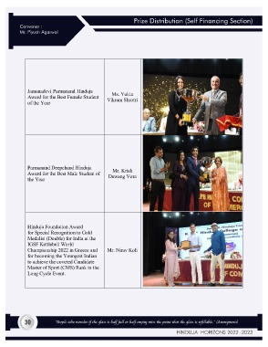 Prize Distribution (Self Financing Section) Convener : Mr. Piyush Agarwal 30 “People who wonder if the glass is half full or half empty miss the point that the glass is refillable.” (Anonymous) HINDUJA HORIZONS 2022 -2023