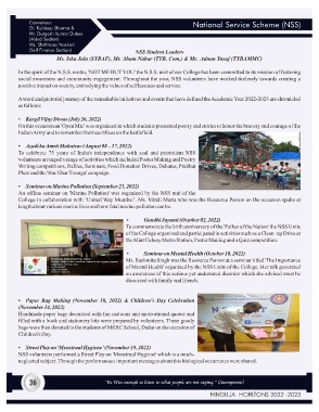 In the spirit of the N.S.S. motto, 'NOT ME BUT YOU' the N.S.S. unit of our College has been committed to its mission of fostering