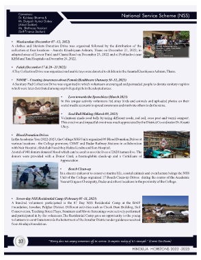 In the Academic Year 2022-2023, the College NSS Units organized 09 Blood Donation Drives at