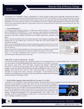 The Rotaract Club of Hinduja College's commitment is to create a positive change, foster community connections and make a