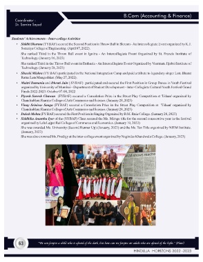 • Piyush Suresh Chawan (FYBAF) secured a Consolation Prize in the Street Play Competition at 'Udaan' organized by