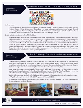• Hinduja College alumnus, Mr. Prathmesh Chiplunkar, SEO, Manager in Webenza India Pvt. Ltd. delivered a Guest Lecture